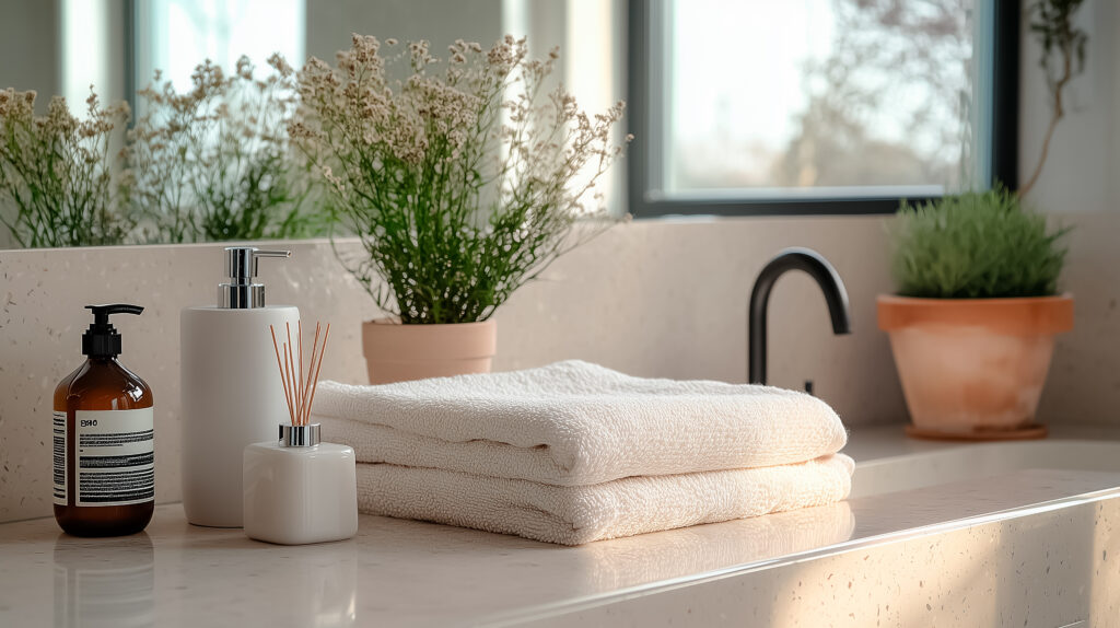 Another detail I love is setting out towels in a way that feels welcoming and easy to access. A basket of neatly rolled towels adds both style and function. It looks intentional, and it saves your guest from having to ask where things are. If you want to go the extra mile, add a washcloth and hand towel to the mix so they have everything they need right at their fingertips.