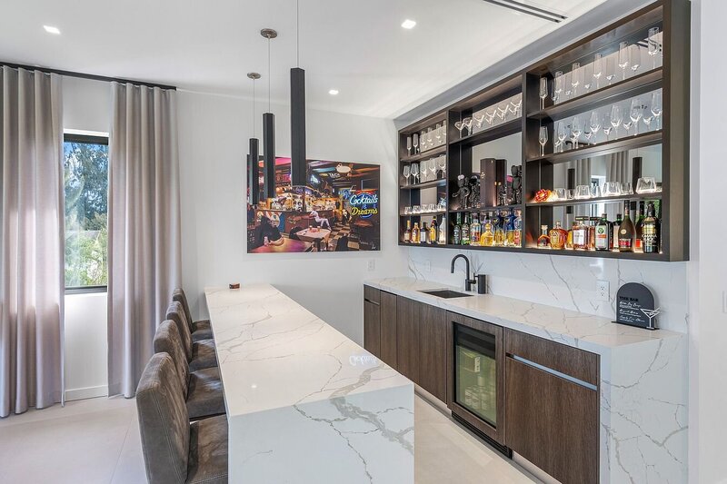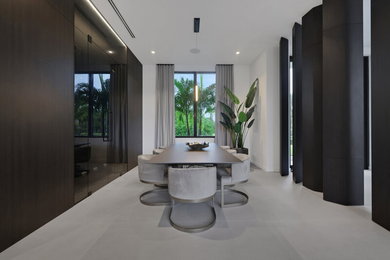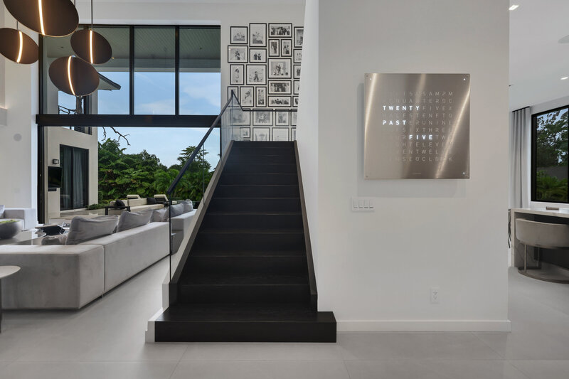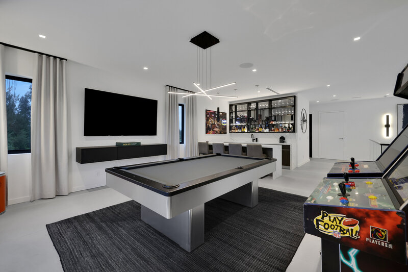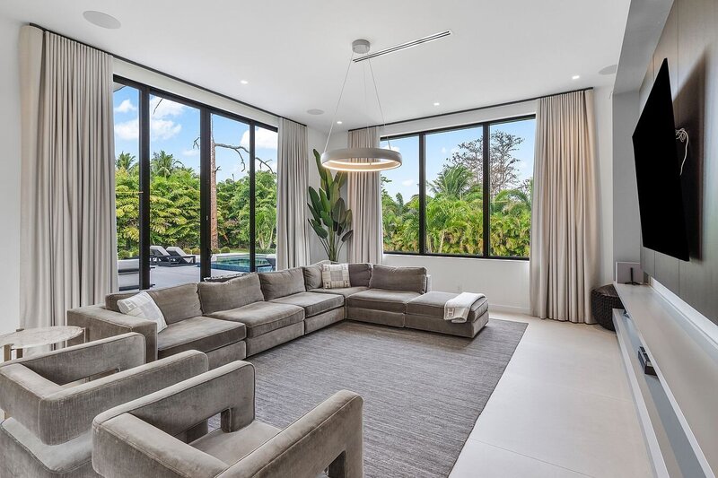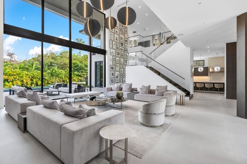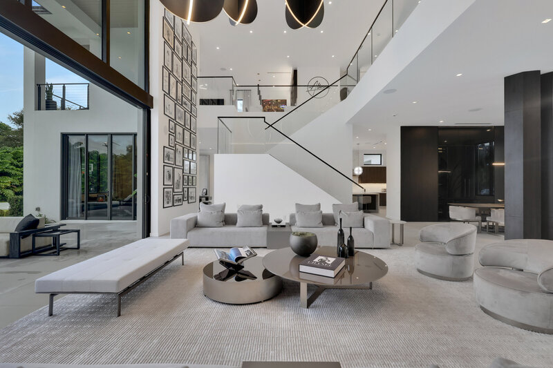 This residence embodies contemporary sophistication with clean architectural lines, expansive windows, and thoughtfully layered design elements. The open floor plan highlights double-height ceilings, statement lighting, and a refined neutral palette accented with bold contrasts. Every space is designed with intention—balancing luxury and comfort through plush furnishings, natural light, and seamless indoor-outdoor flow. From the sculptural details to the curated artwork, the home reflects modern elegance at every turn, creating an atmosphere that feels both striking and effortlessly livable.